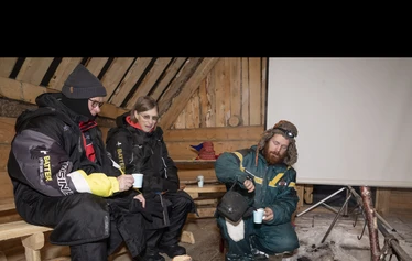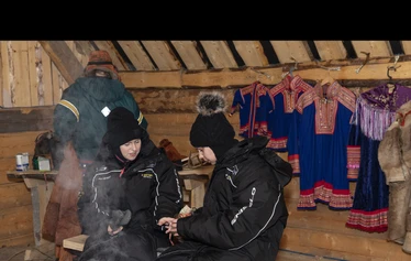 After your enchanting encounter in the corral, step indoors to the spacious log cabin. Here, enjoy the warmth from an open fire and treat yourself to freshly baked homemade biscuits paired with refreshing berry juice, providing the perfect setting to unwind and learn more about the Sámi people and culture.
